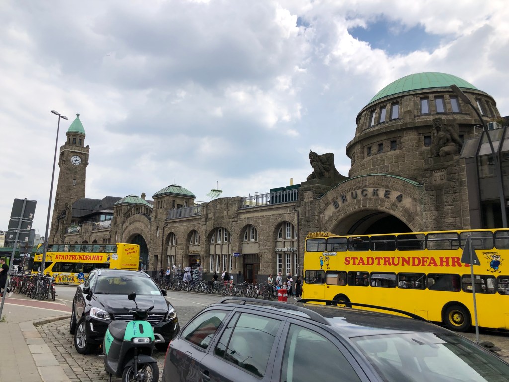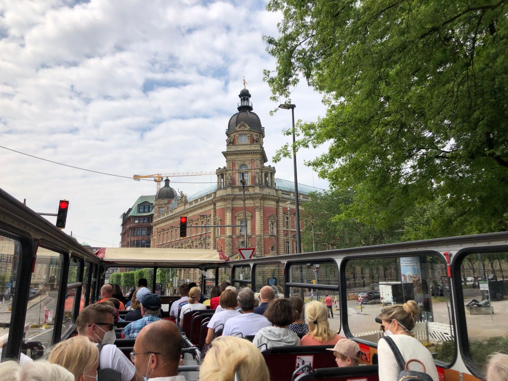 Im Laufe des Nachmittags ging es Paddy leider immer schlechter, so dass wir zum Hotel zurückliefen und den restlichen Tag im Hotelzimmer verbrachten. Zum Glück war am nächsten Morgen wieder alles ok und Paddy zurück auf Normaltemperatur, und so entschlossen wir uns, eine Sightseeing-Tour mit dem Bus zu machen, mit einem Abstecher zur Reeperbahn und den Landungsbrücken: