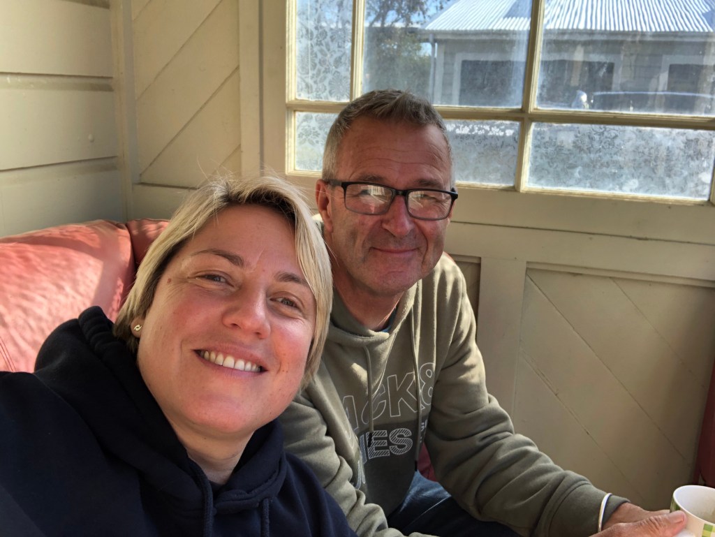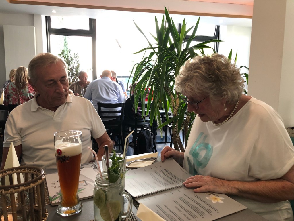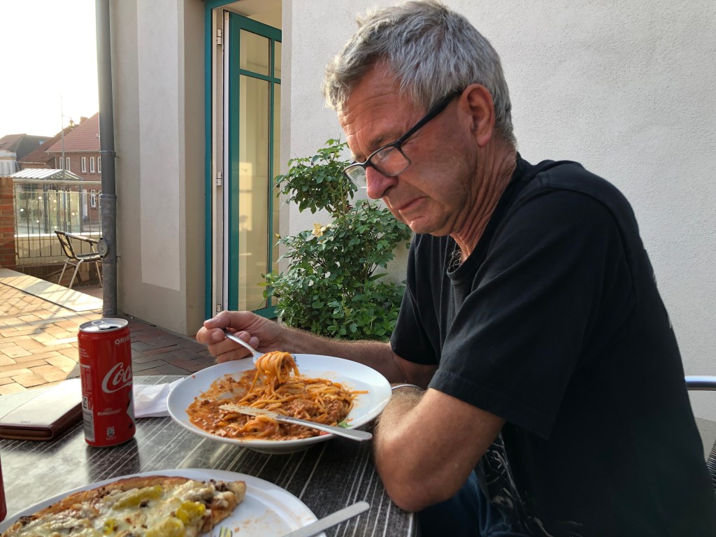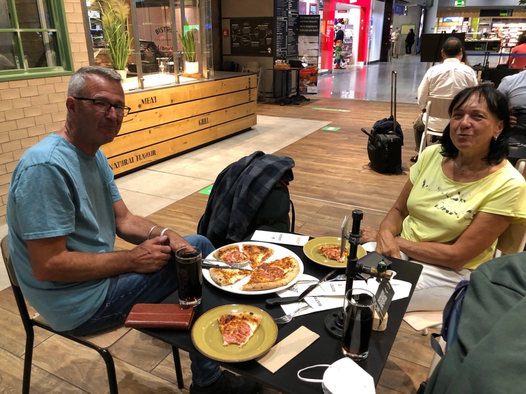 Paddy und Claudi kurz vormAbschiednehmen.Nochmal stärken vorm Abflug 😊.