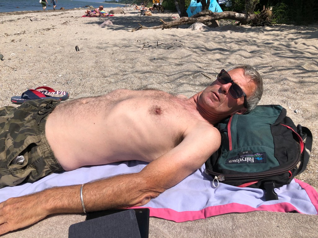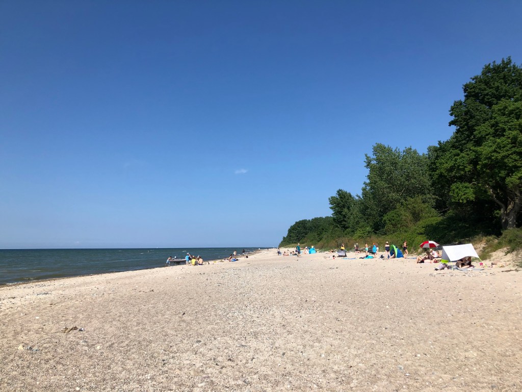 Da der Montag der letzte schöne Tag sein sollte, wollten wir das nochmal für einen Strandtag ausnutzen und fuhren diesmal nach Schwansee, einem anderen Naturstrand ca 15 Minuten von unserer Ferienwohnung entfernt. Diesmal hatten wir natürlich Sonnencreme dabei 😉