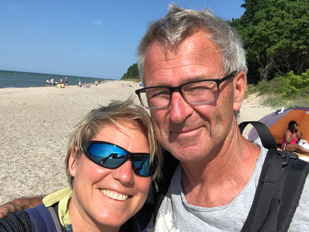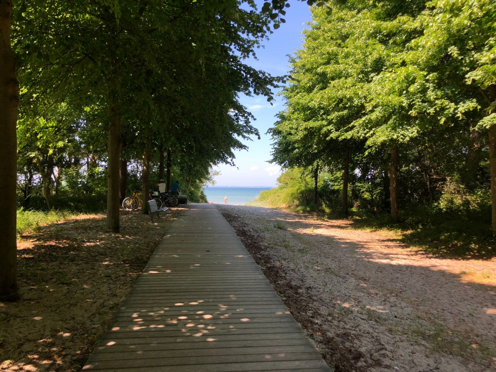 Der Weg zum Strand – ganz hinten kann man das blaue Wasser schon durchblitzen sehen.Fast da!Wunderschöner Naturstrand mit nur sehr wenigen Leuten! Was will man mehr?!Zwei glückliche Ostsee-Urlauber – die Haare vom Winde verweht 😉
