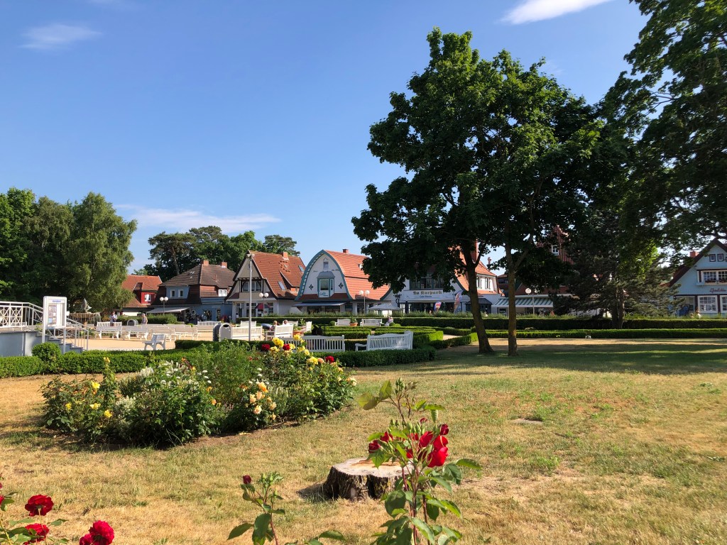 Häuserzeile am Kurpark nahe des Strandes von Boltenhagen.