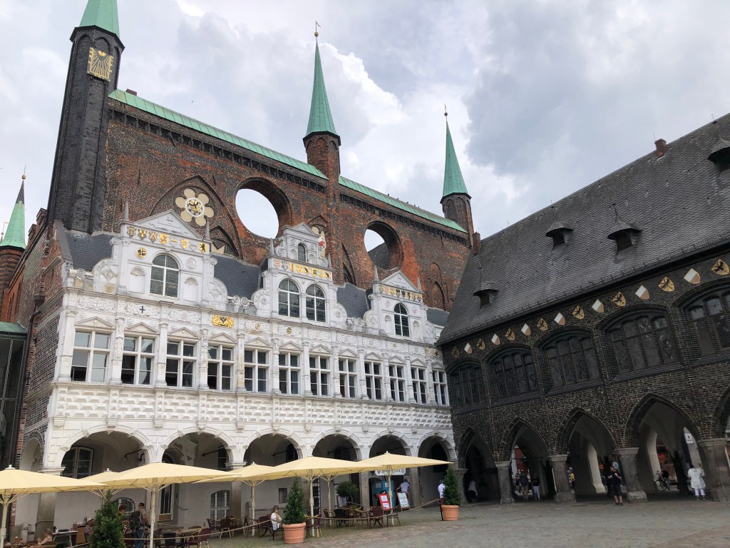 Da wir alle hungrig waren, beschlossen wir, im Rathausinnenhof eine Kleinigkeit zu essen, bevor es weiterging mit der Stadtbesichtigung: