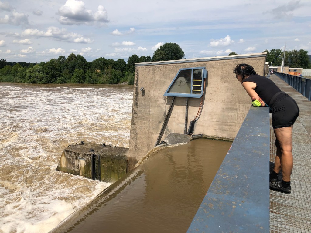 Claudi wie immer ganz sportlich unterwegs 🙂Paddy auf dem Radl.Die Burg in Alzenau, die jetzt das Gericht beherbergt.Die Kirche am Marktplatz in Alzenau.Ein gutes Radl-Team 🙂Auch der Main ist bei Hochwasser sehenswert! Hier von der Schleuse Kleinostheim aus.Claudi und Paddy nach der Radtour zum Niedernberger See.Der Niedernberger See.