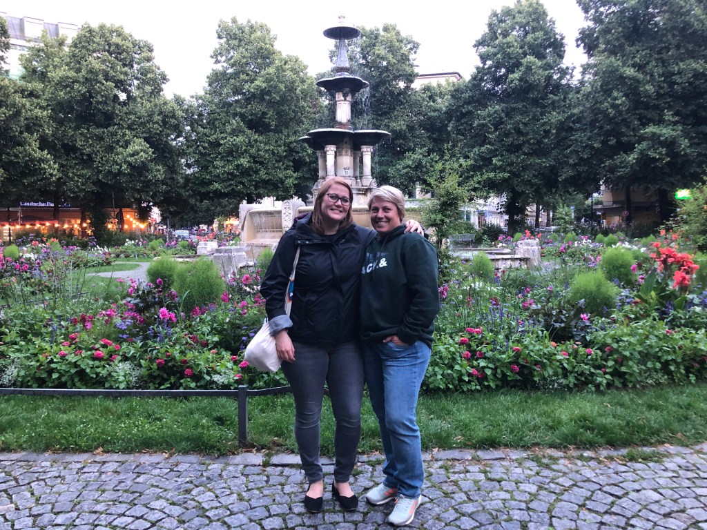 Claudi und ich vorm Brunnen am Weißenburger Platz.