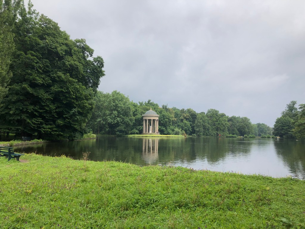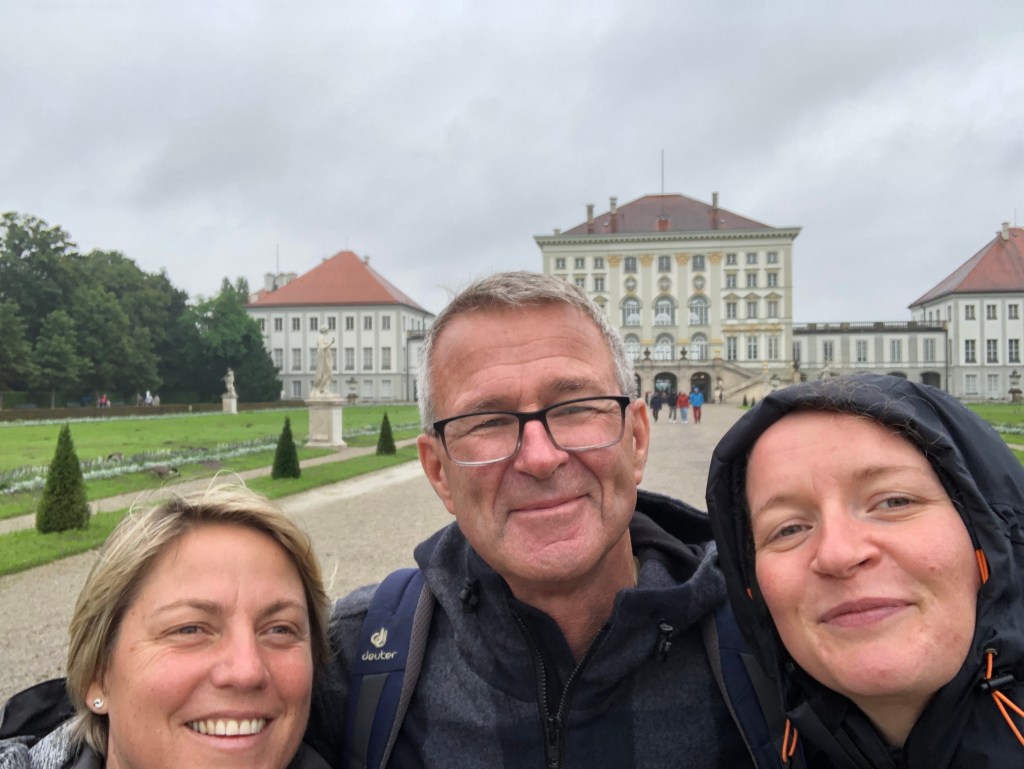 Drei Touristen vorm Nymphenburger Schloss 🙂Tempel im Schlosspark – wie man sieht war das Wetter eher durchwachsen…Anne auf der Jagd nach Steinen.Genau mein Humor!!! 🙂
