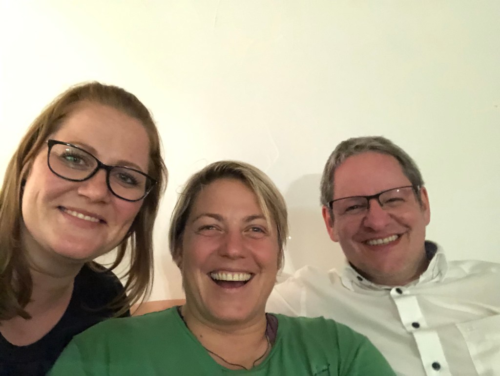 Abschiedsfoto: Paddy, Anne und ich bei unserem letzten Kaffee zusammen am Hauptbahnhof.
