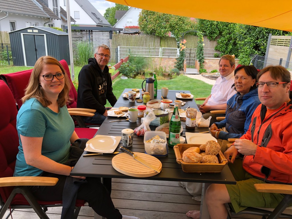 Am nächsten Morgen waren wir bei Walter und Elli in Pasing zum Frühstück eingeladen. Super, dass es mit den beiden und ihrer Tochter Cassandra nochmal mit einem Treffen geklappt hat, obwohl wir uns das letzte Mal eigentlich schon verabschiedet hatten! Wir sehen uns dann in Neuseeland wieder 🙂