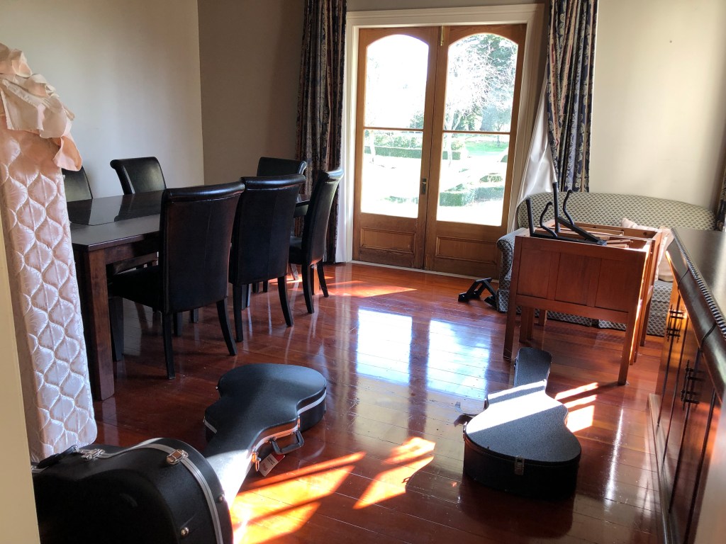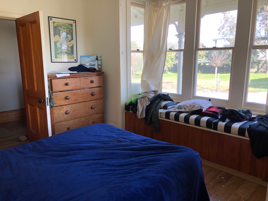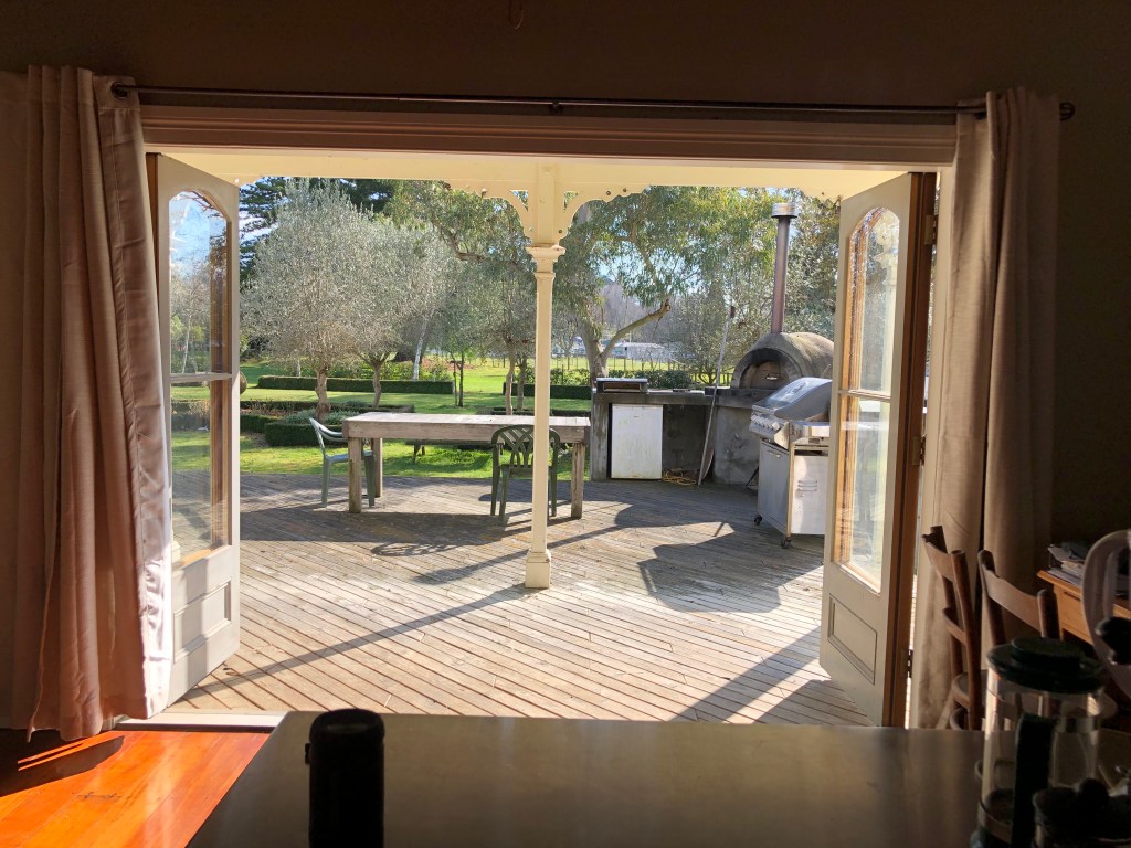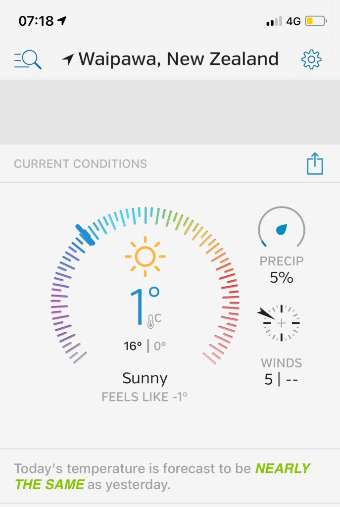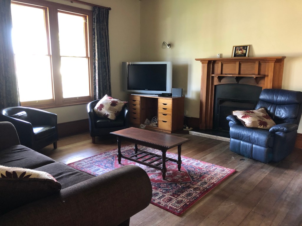 Bei Sonnenschein ist es trotz Winter relativ warm, tagsüber hat es zwischen 12 und 18 Grad. Leider kann man das nicht von unserem Haus sagen, das ist leider immer a…kalt!! Das war definitiv mein größtes Problem am Anfang, denn ich bin 23 Grad drinnen gewöhnt. In Deutschland sind die Wohnungen normalerweise warm und wir haben Zentralheizung. Sowas gibt es in Neuseeland wenn überhaupt, dann nur in neuen Häusern. Hier hat es im Haus morgens nach einer kalten Nacht vielleicht 7-8 Grad, so dass es draußen ziemlich schnell wärmer ist als im Haus. Dann reißen wir alle Türen und Fenster auf, um das Haus wärmer zu machen! Paddy’s Haus wird mit drei Kaminen gewärmt, je einem in den beiden Wohnzimmern und einem in der Küche. Die anderen Zimmer bleiben kalt. Deshalb benutzen die Menschen in Neuseeland auch Heizdecken in ihren Betten, und ich kann euch sagen, es ist ein Traum, in einem eiskalten Schlafzimmer in das warme Bett zu steigen!!! Unsere erste Nacht daheim war saukalt, und ich habe nicht gut geschlafen wegen der Kälte, das war ich nicht gewohnt!