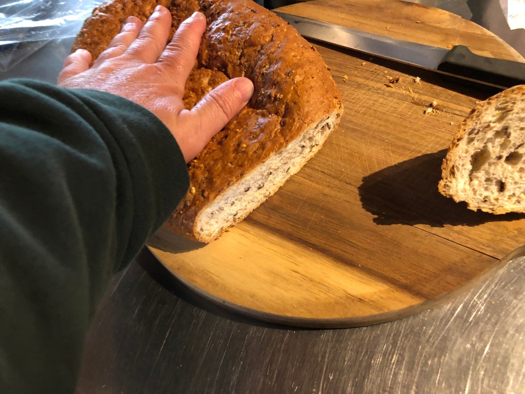 Neuseeländisches „Multi grain bread“…… das man mühelos auf ein Viertel seiner Größe zusammen drücken kann.Mein erstes Vollkornbrot, leider etwas flach und kompakt und innen noch nicht ganz durch, aber getoastet sehr lecker!