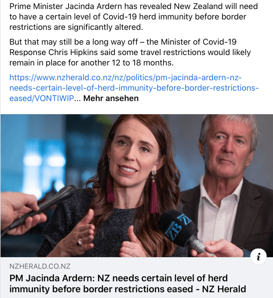 Außerdem haben wir in die Möglichkeit geschaut, ein Critical Health Worker Visa für mich zu bekommen, aber das ist unmöglich – die deutsche Ausbildung zur Krankenschwester wird dort nicht anerkannt, ich kann im Moment wegen des Lockdowns den geforderten Englisch-Test nicht machen und meine Universität müsste dem NZ Nursing Council einen detaillierten Brief über mich schicken, in dem sie alle Veranstaltungen und ihre Inhalte, die ich in meinem Gesundheitsstudium gemacht habe, ausführlich darlegen – das macht keine deutsche Uni, und schon gar nicht im Lockdown. Außerdem hätte ich für eine Registration mindestens 2 Jahre in den letzten 5 Jahren als Krankenschwester arbeiten müssen, das hab ich natürlich auch nicht. Diese Idee haben wir also leider wieder aufgeben müssen.