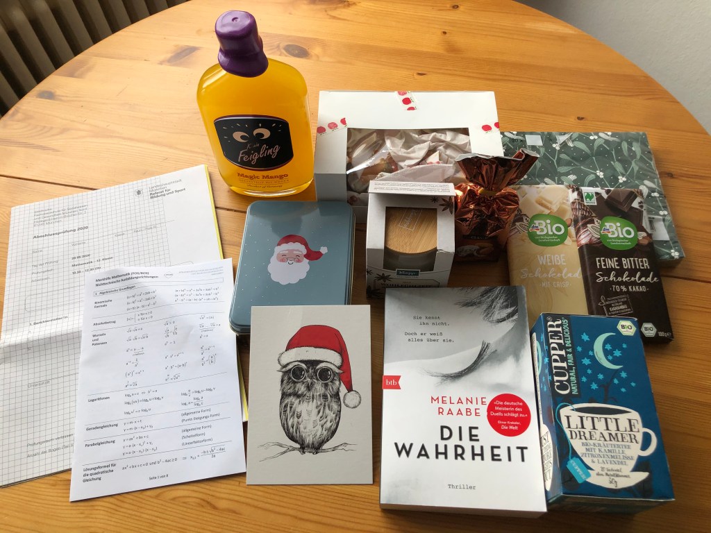 Was mich riesig gefreut hat, sind die Care-Pakete meiner Freunde, die vor Weihnachten ankamen – es ist in dieser besch… Zeit sooo schön daran erinnert zu werden, dass man nicht allein ist und gute Freunde hat, die an einen denken – auch wenn ich mich zur Zeit nicht gerade sehr regelmäßig melde (Sorry!!!!) … Ich hab mich so sehr darüber gefreut, gerade nach dem ganzen Visum-Mist!!! Ihr seid echt die Besten!!!