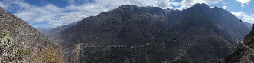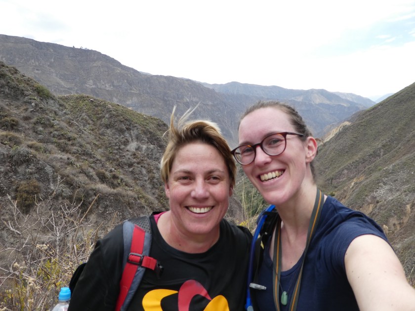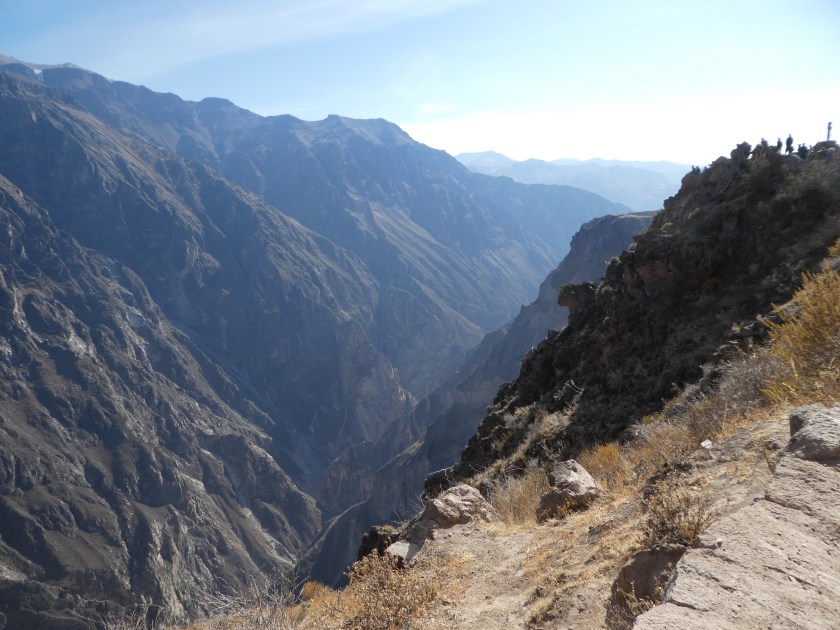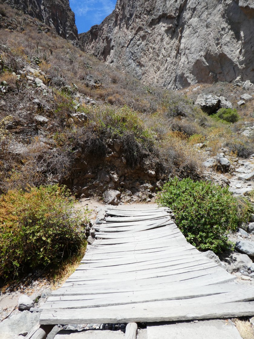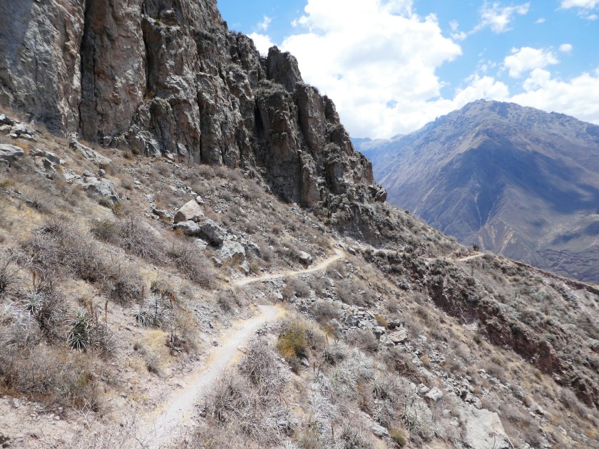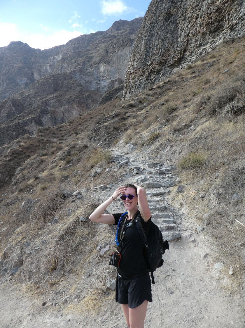 Zum Glück war es dann nicht so schlimm, wie befürchtet (oder wir waren inzwischen wirklich fit 😜). Der Weg schlängelte sich in Serpentinen, meist nicht supersteil, die Wand entlang nach oben. Zwischendrin gab es steile Passagen mit Stufen (ich hasse Stufen!!!), aber auch flachere Passagen, auf denen man den tollen Ausblick über das Colca-Tal genießen konnte.