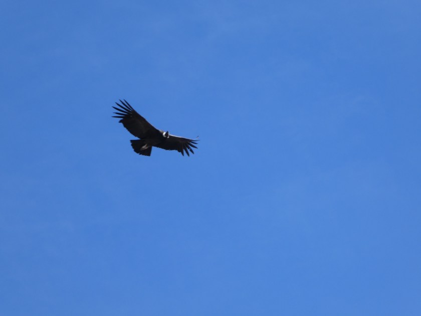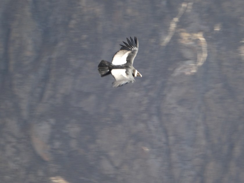 Morgens um 6.30 Uhr machten wir uns nach ausgiebigem Frühstück auf zur Bushaltestelle und mit einem altersschwachen Bus, der kaum die Berge rauf kam, ging es zum Cruz del Condor, wo schon etliche Touristen auf Kondore warteten. Wir mussten auch gar nicht lange warten, da flogen schon ein paar von ihnen den Canyon rauf und runter. Einer kam sogar richtig nah und flog über uns drüber. Sie sind nur leider zu schnell für die Kamera, weshalb die Bilder nicht soooo doll sind…