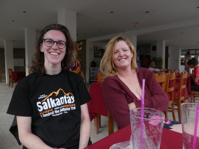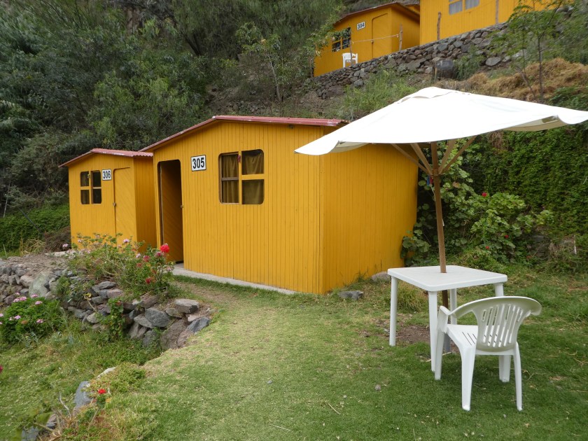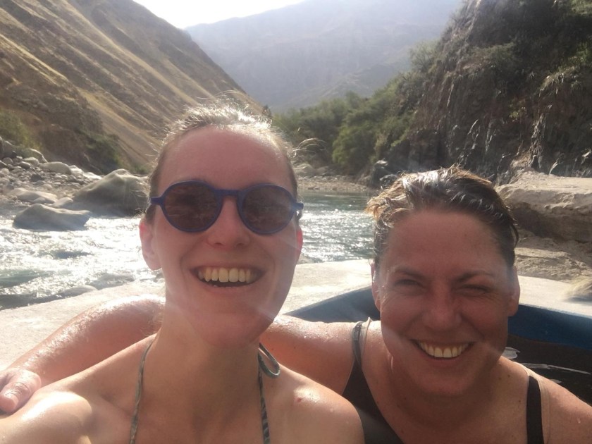 Bis zu unserer Unterkunft, der Llahua Lodge, hatten wir noch einen Berg zu überwinden, einmal hoch und das ganze wieder hinunter bis zum Fluss. Dafür wurden wir mit unserer eigenen Blockhütte, einer kalten Cola und Hot Springs belohnt, wofür besonders unsere Beinmuskulatur dankbar war. Bis Spätnachmittags waren dann doch relativ viele andere Wanderer in Llahua angekommen, die natürlich alle im heißen Wasser endeten, wo wir schon bald eine sehr lustige Runde aus Menschen aus allen möglichen Ländern beisammen hatten.