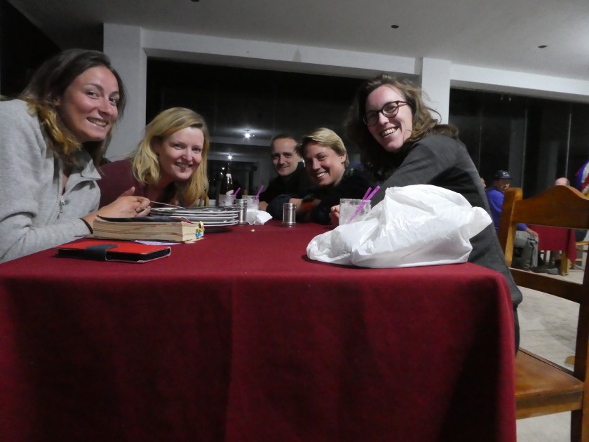 Den Abend verbrachten wir im Restaurant der Lodge oben am Berg, wo es ein etwas sparsames Abendessen, einen Pisco Sour und jede Menge gute Laune gab. Danach ging es früh ins Bett, um fit für den nächsten Tag zu sein.