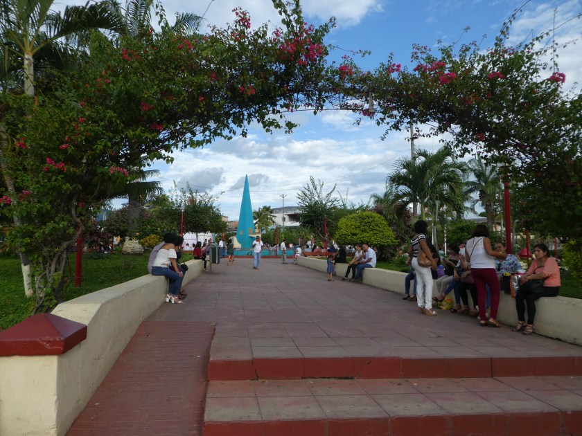 Am Freitag kam ich nach 9-stündiger, sehr beengter und unbequemer Fahrt im Minibus in Tarapoto an. Tarapoto hat zirka 100.000 Einwohner und liegt quasi zwischen den Anden und dem Dschungel, nur noch auf zwischen 250 und 500m. Das Klima hier ist tropisch, d.h, es ist sehr feucht und hat um die 32 Grad – endlich richtig warm! Nicht nur vom Klima, sondern auch von der grünen Umgebung her erinnert es mich sehr an Dominica. Sobald ich ankam, hörte ich nicht mehr auf zu Schwitzen, selbst wenn ich nichts tat – mein Körper muss sich erstmal wieder an Wärme gewöhnen, schließlich hatte ich das seit Juli nicht mehr!