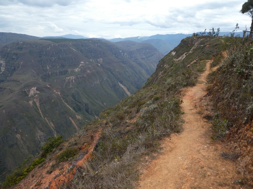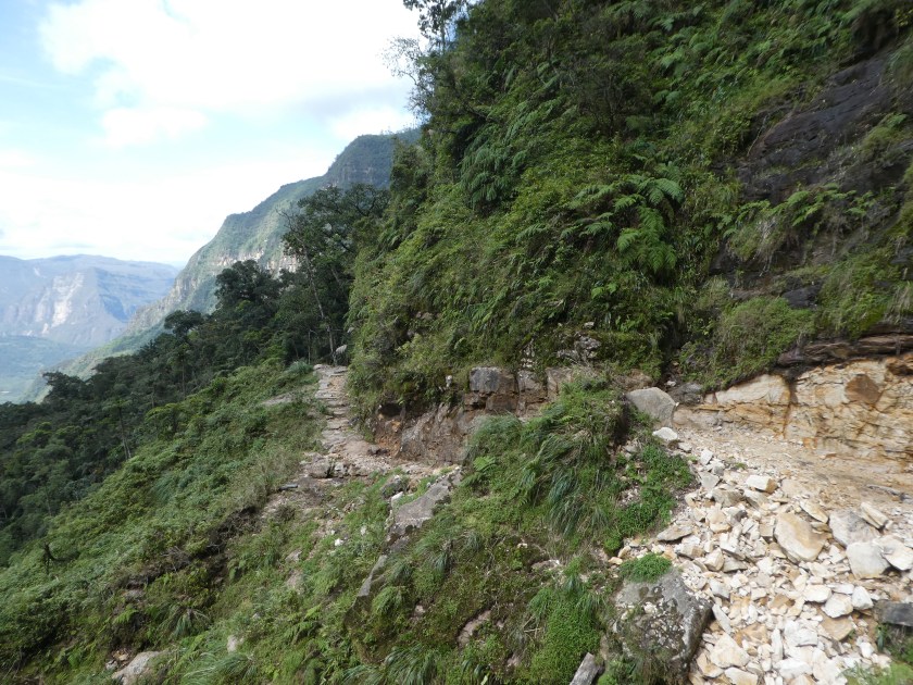 Das Collectivo nach Pedro Ruiz setzte mich an der Kreuzung zur Straße nach San Pablo ab, von wo ich ein Mototaxi bis ins Dorf hinauf nahm – sehr holprige und stinkende Angelegenheit, aber erfüllte ihren Zweck. Nach Eintrittzahlen im Tourismusbüro ging es gegen 7.30 Uhr los. Man hatte mir gesagt, dass die Wanderung um die 8 Stunden dauern würde, und ich hoffte, dass dann noch Collectivos zurück nach Chachapoyas fahren würden…