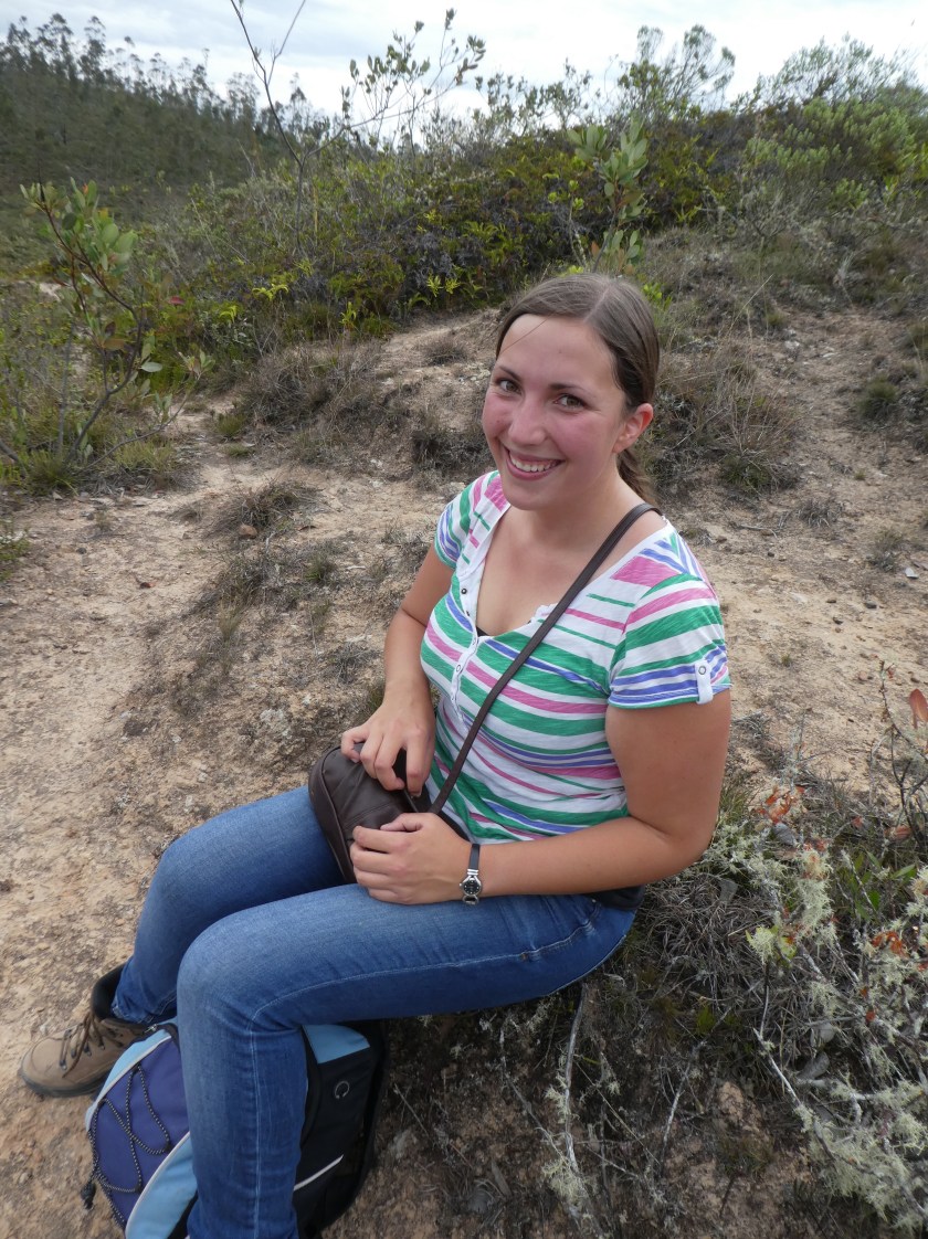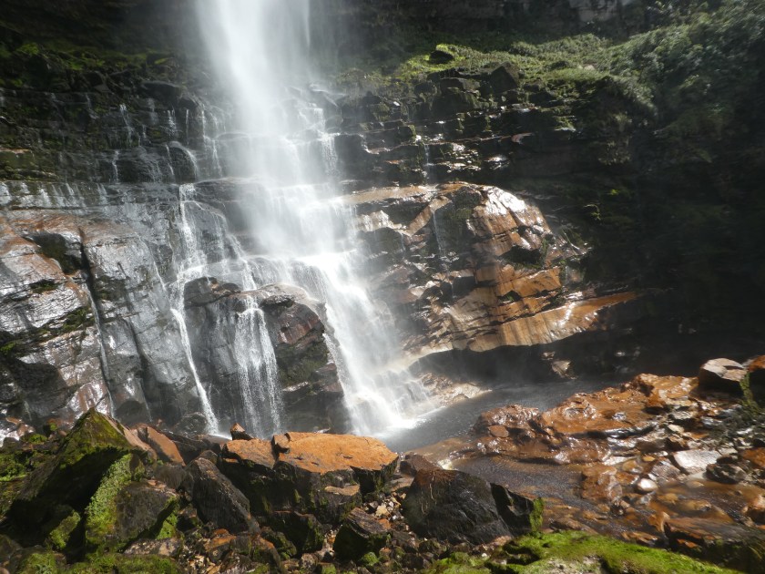 Für das erste Teilstück hatte ich etwas mehr als eineinhalb Stunden gebraucht, war also ziemlich schnell unterwegs. Aber es ist ja auch so viel leichter auf einer Höhe von 1900m – die letzten Wochen war es immer 2000-3000m höher! Ich kletterte noch ein bisschen auf den Steinen rum und machte danach Frühstückspause – bisher war ich ganz alleine unterwegs, traumhaft! Danach brach ich auf zum zweiten Wasserfall. Dafür geht es ziemlich steil den Berg hinunter, was aber kein Problem war, da es trocken war. Bei Regen ist das sicher kein Vergnügen! Nach nichtmal 1,5 Stunden war ich dann da:
