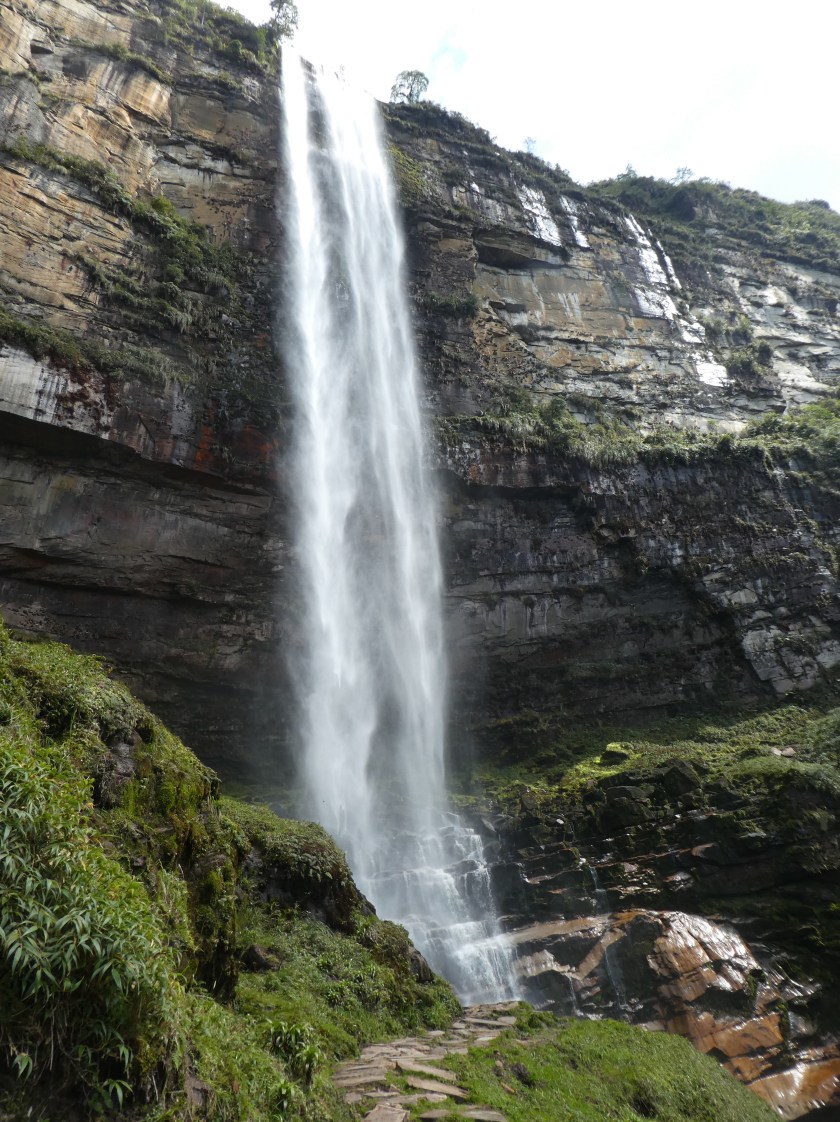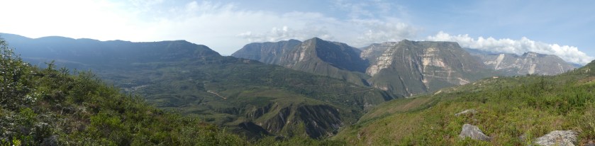 Nach einer weiteren Pause und ausführlicher Wasserfallerkundung, und weil dann doch die ersten Leute der organisierten Touren eintrafen, machte ich mich auf das letzte Teilstück nach Cocachimba. Hier wurde es jetzt voll, mir kamen die ganzen Reisegruppen in mehr oder weniger guter Verfassung (es ging schon ordentlich rauf und runter) entgegen. Das letzte Stück hatte es nochmal in sich, es ging ca 500hm am Stück bergauf. Verschwitzt und zufrieden kam ich in Cocachimba nach weiteren nicht ganz 1,5 Stunden an, insgesamt hatte ich mit einer Stunde Pause 5,5 Stunden gebraucht. Leider gab es um diese Zeit kein Mototaxi, so dass ich weitere 1,5 Stunden zurück zur Kreuzung laufen musste. Dort wartete eine Frau mit Kind und Opa ebenfalls auf den Bus. Als ein Auto vorbei fuhr, hielt sie es an und fragte für mich mit, ob der Fahrer uns nach Chachapoyas mitnehmen würde, was der auch tat! Sehr cool, ich wäre nie allein per Anhalter gefahren, aber so sparte ich mir eine wahrscheinlich lange Warterei auf den nächsten Bus!