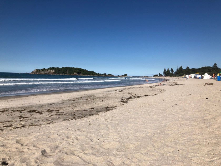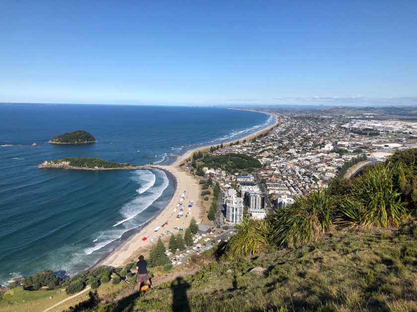 Blick auf den Ort Mount Maunganui und seinen Strand.