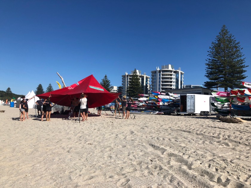 Am Strand wurde gerade aufgebaut für ein Bootsrennen am nächsten Tag.