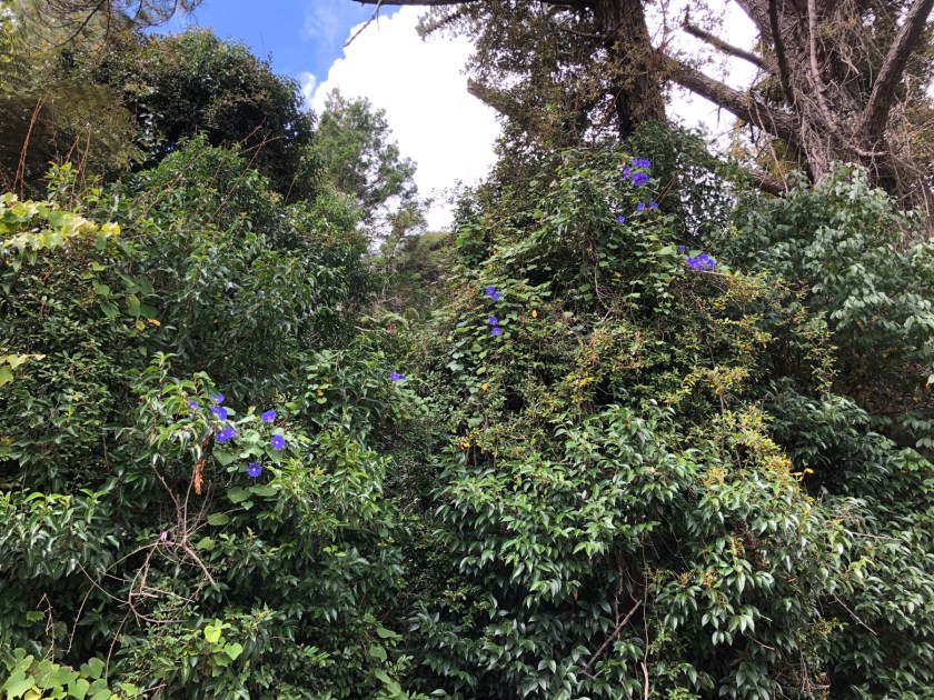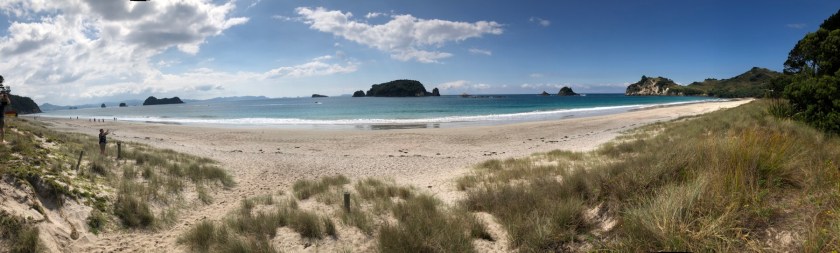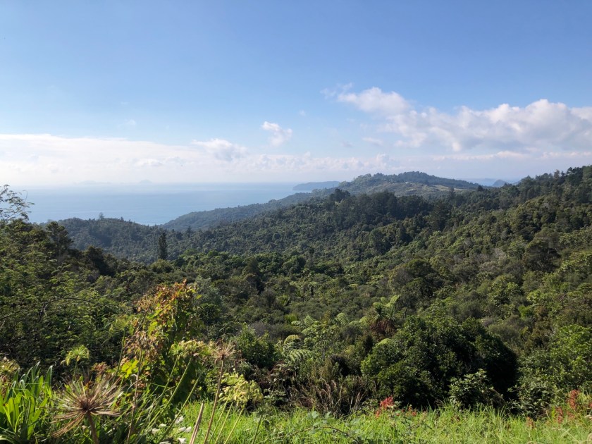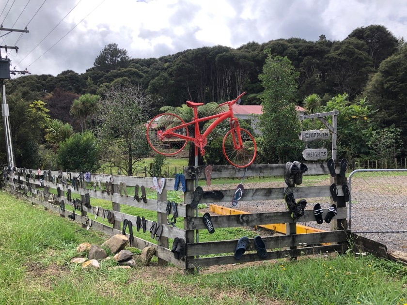 Leider fiel mein Plan, eine Dreitagestour durch den Norden der Coromandel Peninsula zu machen, buchstäblich ins Wasser: Am Montag hatte es so viel geregnet, dass am Dienstag nicht an Zelten zu denken war, weil zu viel Wasser überall stand, und im Norden gibt es nur Campingplätze. Also blieb ich schweren Herzens in Coromandel und radelte wenigstens in der näheren Umgebung umher – trotz ziemlich heftigem Wind, aber wenigstens bei Sonnenschein. Hier ein paar Eindrücke: