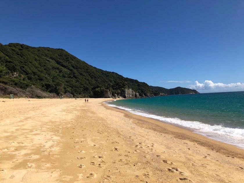 Nach einer Woche im wunderschönen Abel Tasman National Park mit Bike, Kayak und zu Fuß stieg ich am Montag wieder auf mein Rad und fuhr los gen Osten Richtung Marlborough Sounds. An diesem Tag stand nur ein kurzer Trip von 50 km nach Nelson an, ein Teil der Strecke verlief auf dem „Great Taste Trail“, allerdings nutzte ich nur den Radweg und nicht die vielen Einkehrmöglichkeiten – in der Früh war noch alles geschlossen. Leider war ein Teil des Radwegs, Rabbit Island, gesperrt wegen Brandgefahr. Da die letzten Wochen hier im Norden sehr trocken waren, herrscht hohe Brandgefahr, und südlich von Nelson hatte es schon einen großen Brand gegeben, mit Straßensperrungen und Evakuierungen. Hier ein paar Eindrücke von dem Trail nach Nelson: