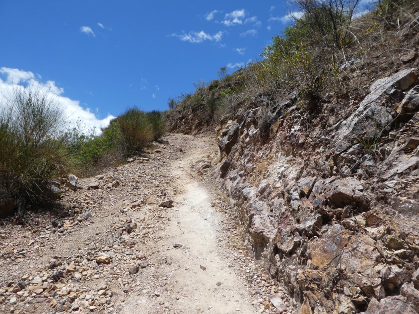 Wie nicht anders zu erwarten, ging es die ganze Zeit bergauf, meist sogar ziemlich steil und häufig mit Riesenstufen bzw. Steinen. Das kommt nur bei den Bildern immer nicht so rüber…