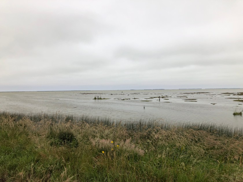 Gestärkt und aufgewärmt ging es weiter am Lake Ellesmere entlang. Anfangs fand ich das noch schön, aber da man von dem See nicht viel sah, sondern nur das Sumpfland, wurde es irgendwann langweilig. Außerdem hatte ich jetzt kräftigen Gegenwind auf der ansonsten anspruchslosen flachen Strecke.