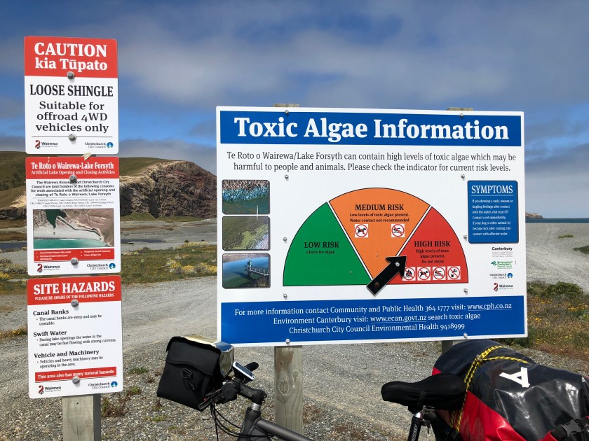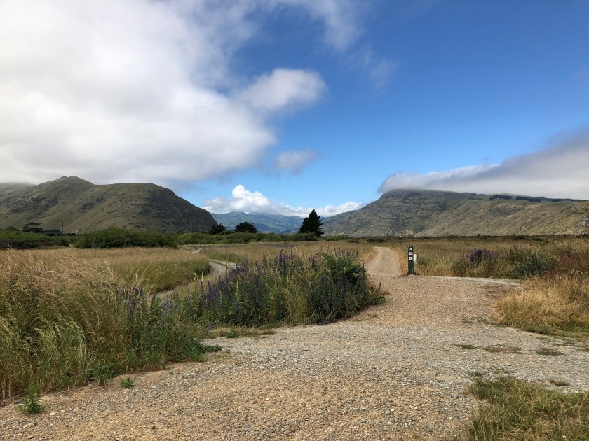 Die ersten paar Kilometer waren wegen des ganzen Gepäcks gewöhnungsbedürftig, es fühlte sich irgendwie ziemlich instabil an. Aber nach ein paar Kilometern hatte ich mich an meinen „Truck“ gewöhnt. Der erste Teil der Strecke aus Christchurch raus war nicht so einfach zu finden, da der Weg nicht beschildert und außerdem ständig eine Straße wegen Baustelle gesperrt war.