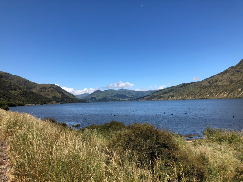 Danach wurde es auch landschaftlich interessant, um nicht zu sagen wunderschön: ich fuhr am Lake Forsyth entlang, und außenrum ragten jetzt Berge (ok, für Bayern eher Hügel) auf.