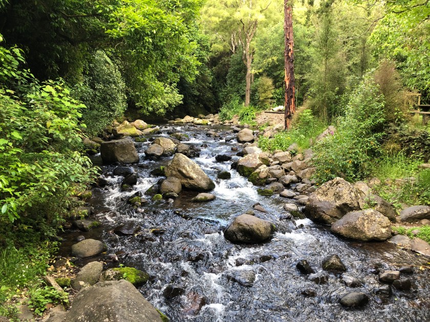 Aber sobald ich Pebbleton erreicht hatte, war der Little River Rail Trail beschildert. Es ging ganz idyllisch immer an dem kleinen Flüsschen entlang, und wenn das Wetter gehalten hätte, wäre es auch echt schön gewesen. Aber leider zog es wieder zu, zwischendurch nieselte es sogar und es wurde windig.