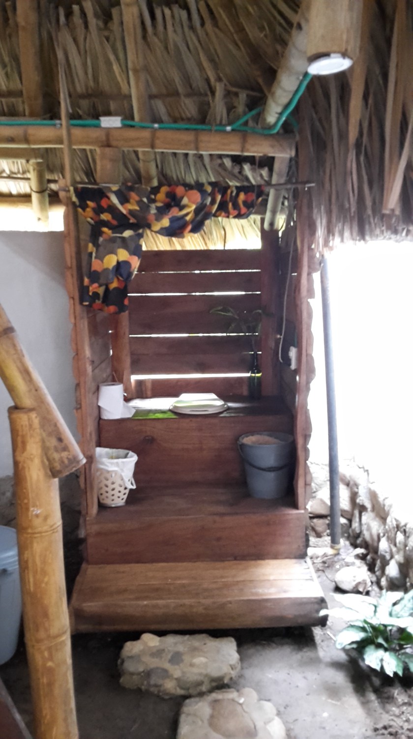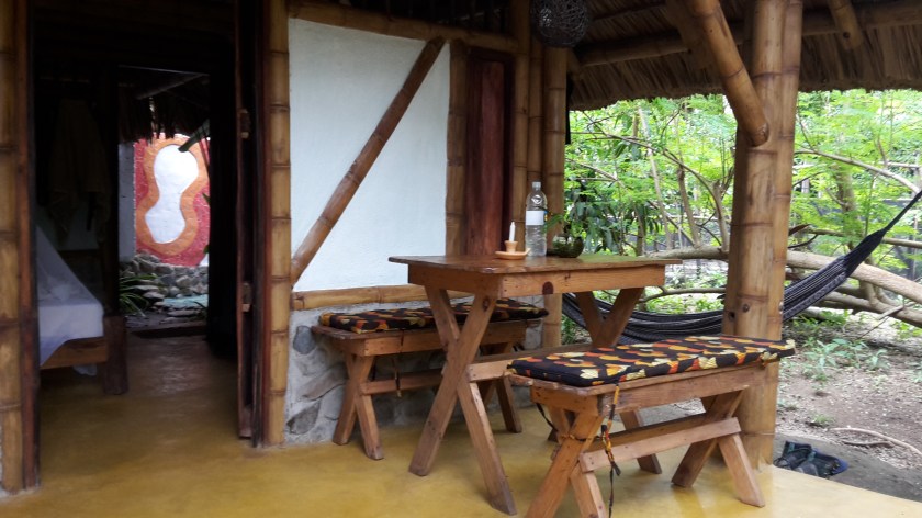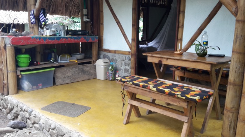 Das erste Mal seit Beginn meiner Reise bleibe ich zwei Wochen am gleichen Ort, es lohnt sich also endlich mal, den Rucksack auszupacken! Hierfür habe ich mir eine gemütliche Hütte fernab des Touristentrubels am Ortsrand, nahe den Bergen gemietet, mit zwei Schlafzimmern, Außenküche und -essbereich, Freiluftdusche und Ökotoilette – und am wichtigsten: Hängematte vor der Tür. Hier ein paar Bilder von meinem „Zuhause“: