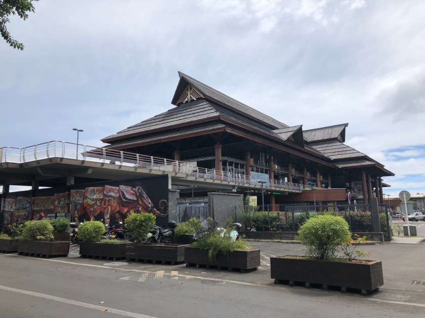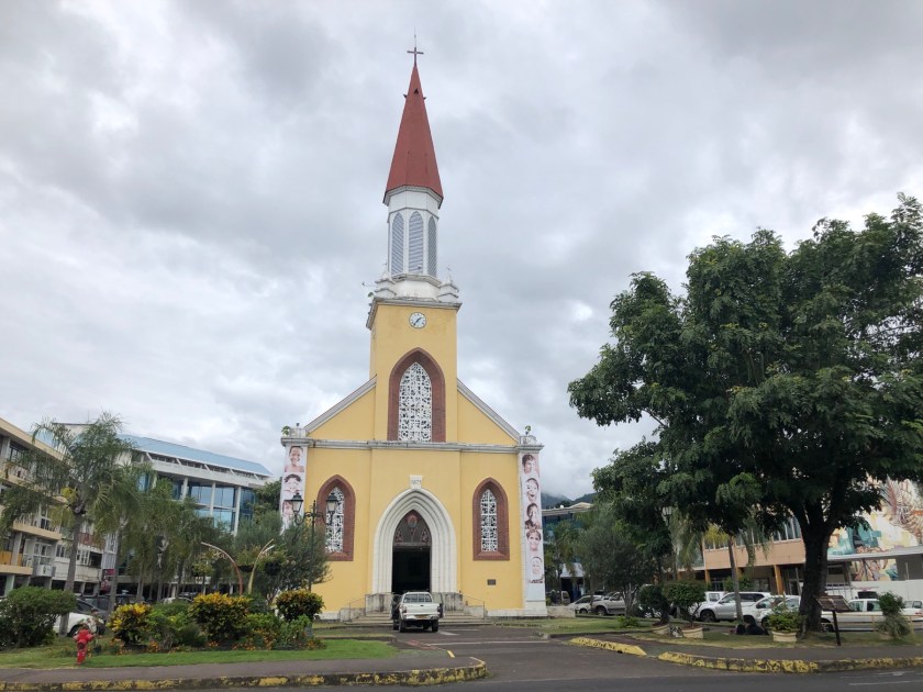 Zuerst wollte ich jedoch noch ein bisschen über den Markt in Papeete bummeln und ein paar Mitbringsel einkaufen. Da ich nicht so der Shopper bin, erledigte ich das in Rekordzeit und wartete dann bei der Kathedrale auf Hugues, der mich dort wenig später aufsammelte.