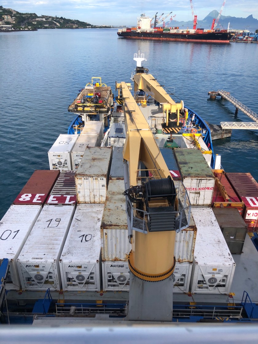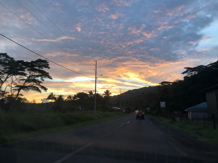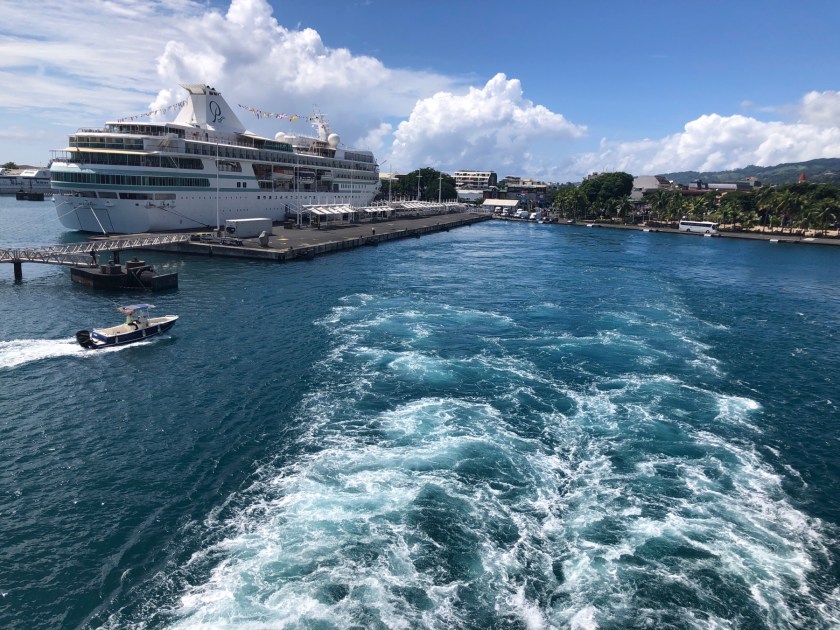 Nach zahlreichen Verabschiedungen von den Leuten, die ich über die letzten zwei Wochen auf der Aranui kennen gelernt hatte, verließ ich am Donnerstag Morgen doch etwas wehmütig das Schiff, das für 13 Tage mein Zuhause gewesen war. Da mein Flug zurück nach Auckland erst um 2.30 Uhr nachts gehen würde, hatten mir Hugues und Evelyne angeboten, den Tag mit ihnen zu verbringen und mich dann abends zum Flughafen zu fahren – dieses Angebot nahm ich natürlich gerne an!