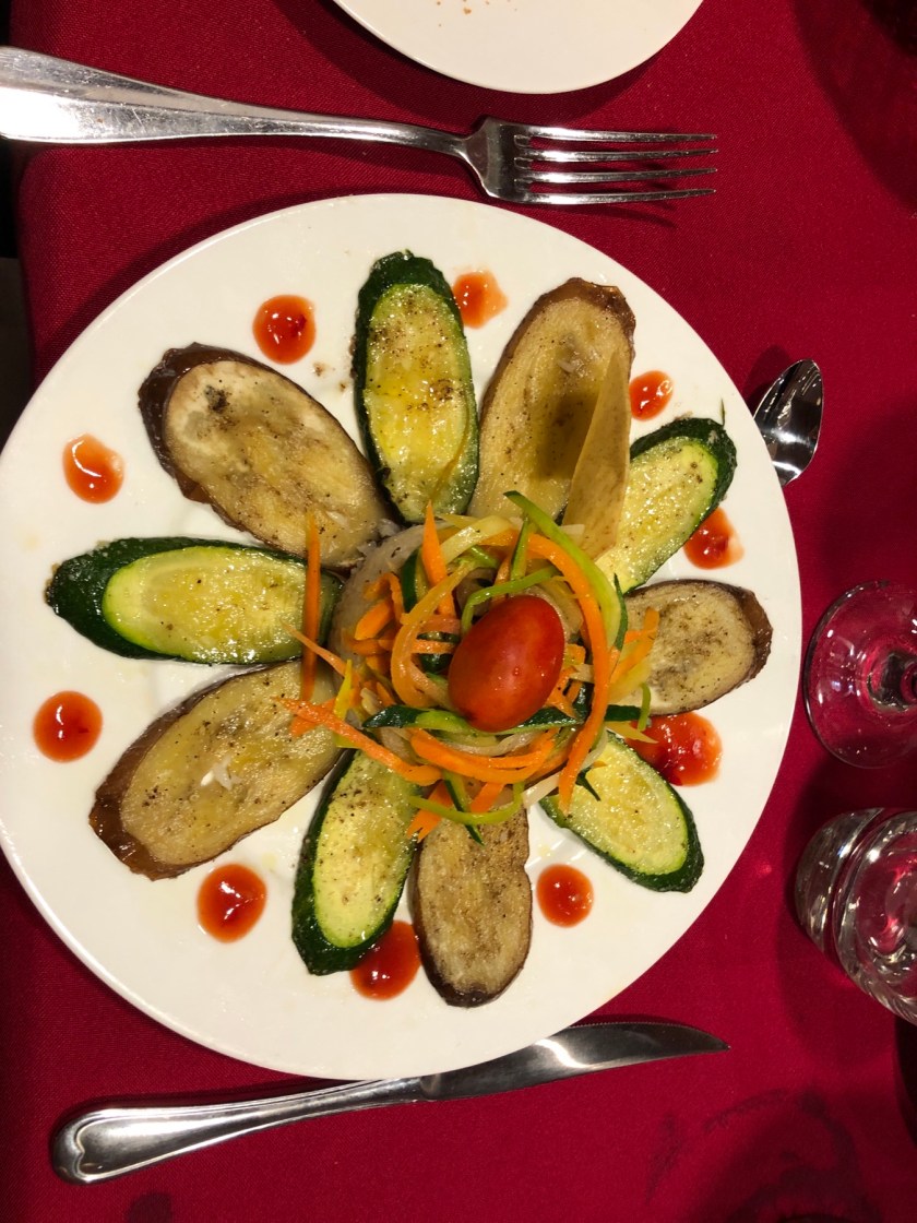 Britta, Clem und Christian beim Essen – zu jedem Essen gab es sowohl Rot- als auch Weißwein.