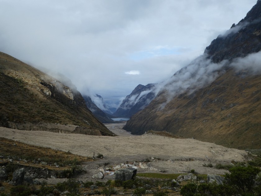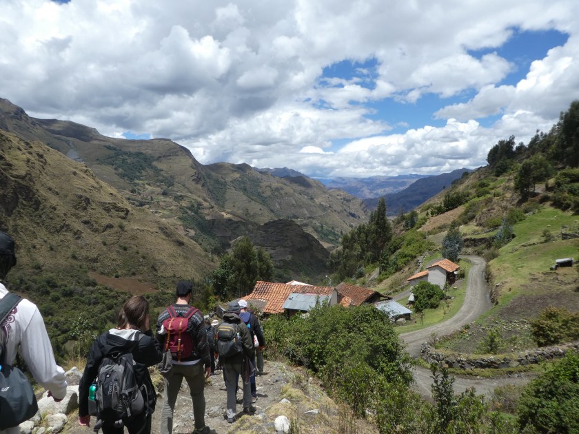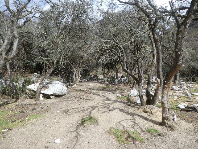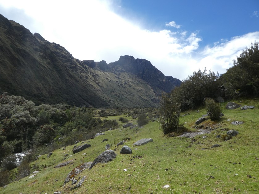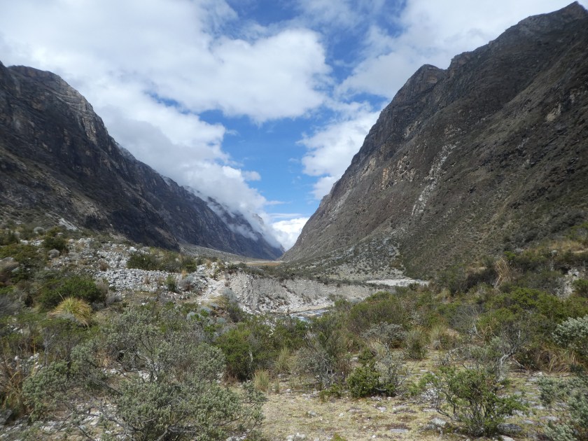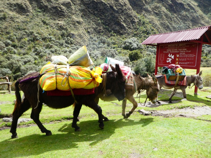 Es ging durch ein wunderschönes Tal hinab bis Cashapampa, wo der Santa Cruz Trek endet. Da einige aus der Gruppe die 4-tägige Version machten, trennten wir uns nach dem ersten Teil: für sie ging es noch zu einer Lagune, während wir schon hinab ins Tal stiegen. Das bedeutete für uns allerdings auch, dass wir die letzten 1,5 Std. mit unserem gesamten Gepäck wandern mussten, da die Esel im Camp für die letzte Nacht blieben.