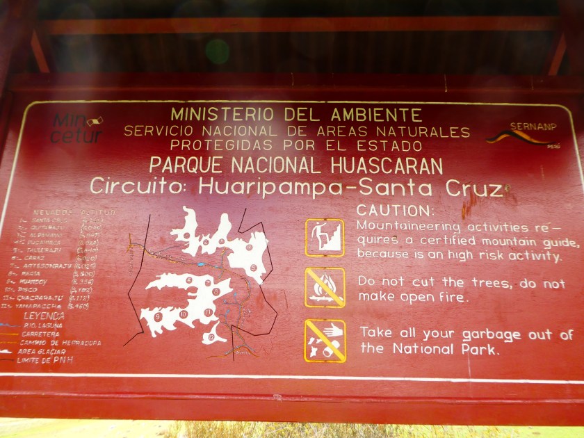 Wegbeschreibung am Eingang des Nationalparks Huascarán.