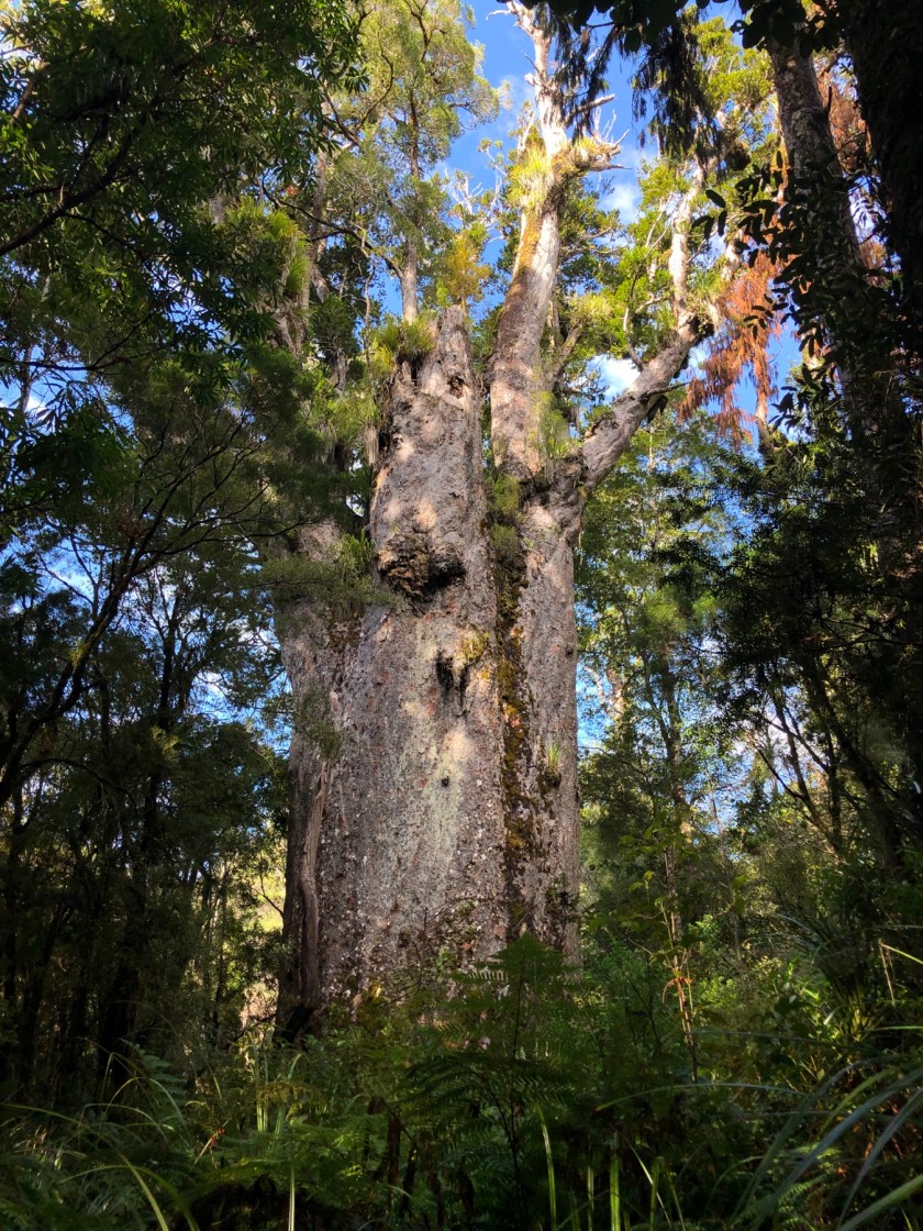 Wir wollten natürlich auch die beiden größten und ältesten Kauribäume sehen, Tane Mahuta (Lord of the Forest), der auf 1500-2000 Jahre alt geschätzt wird, 52m hoch und 14m im Umfang misst: