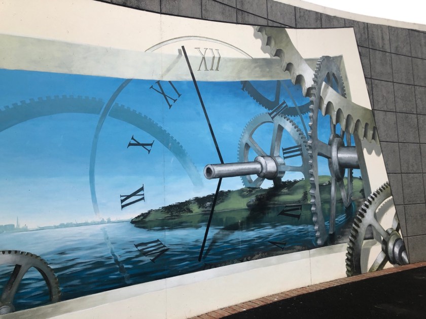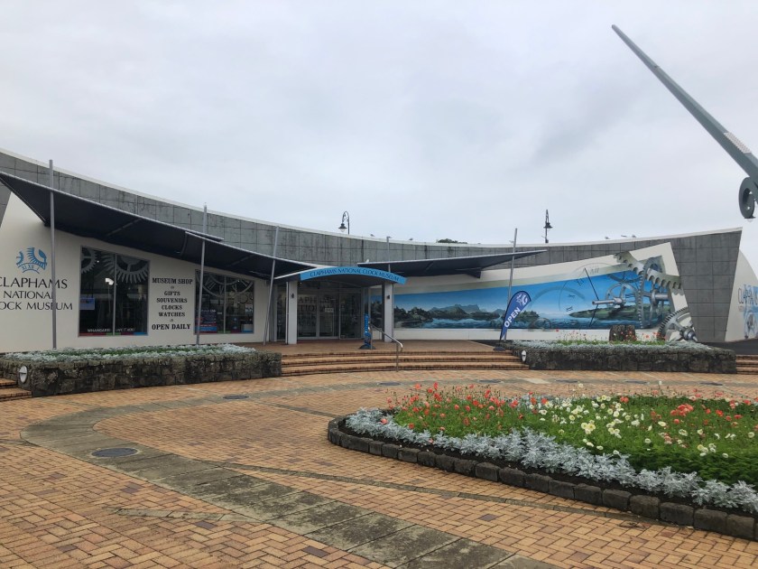 Der Eingang zum Clock Museum mit toll bemalter Wand.